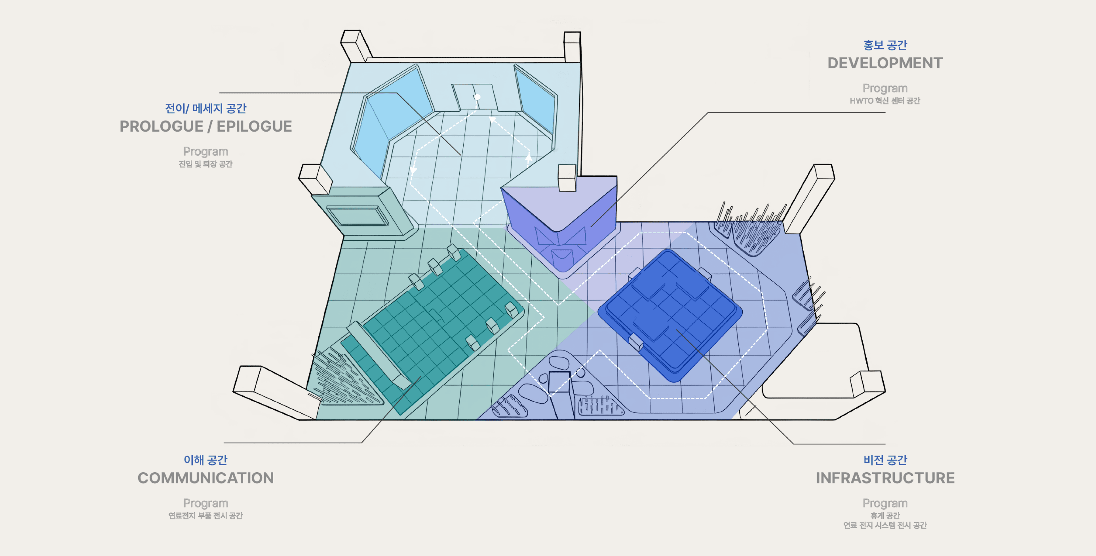 내부의 홍보관은 수소 에너지에 대한 이해를 돕고 미래 수소 사회의 비전을 공유하는 공간으로