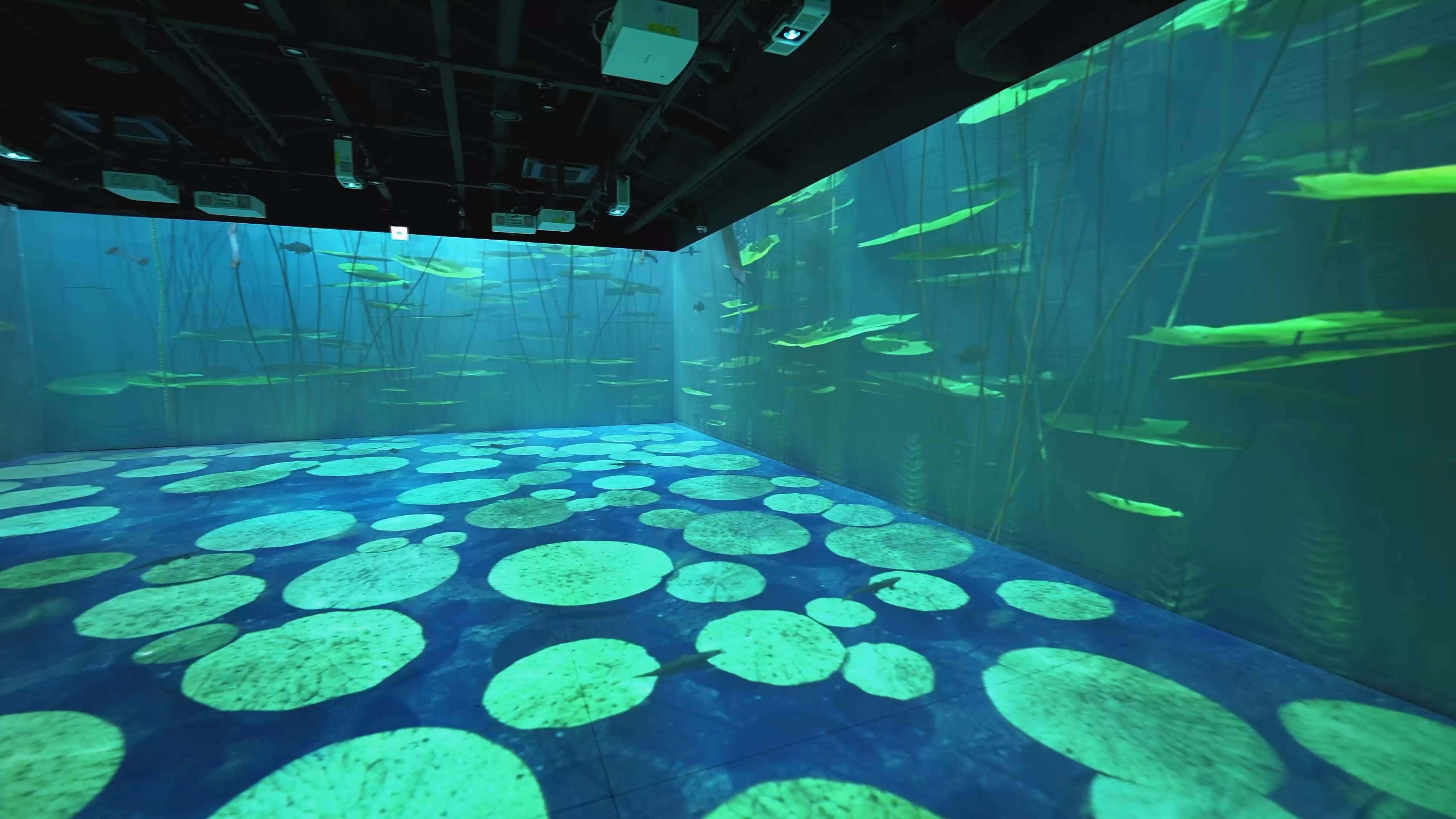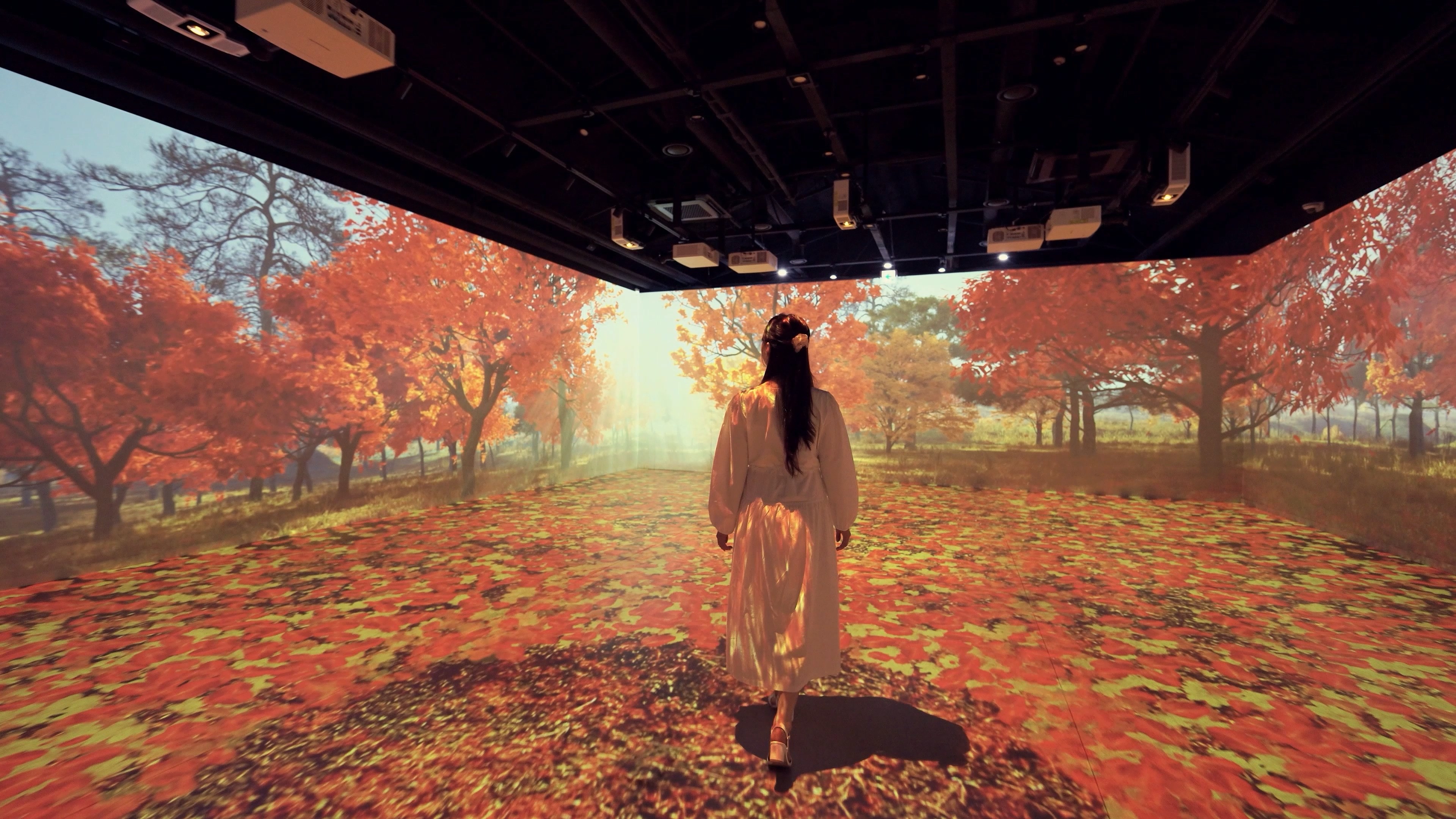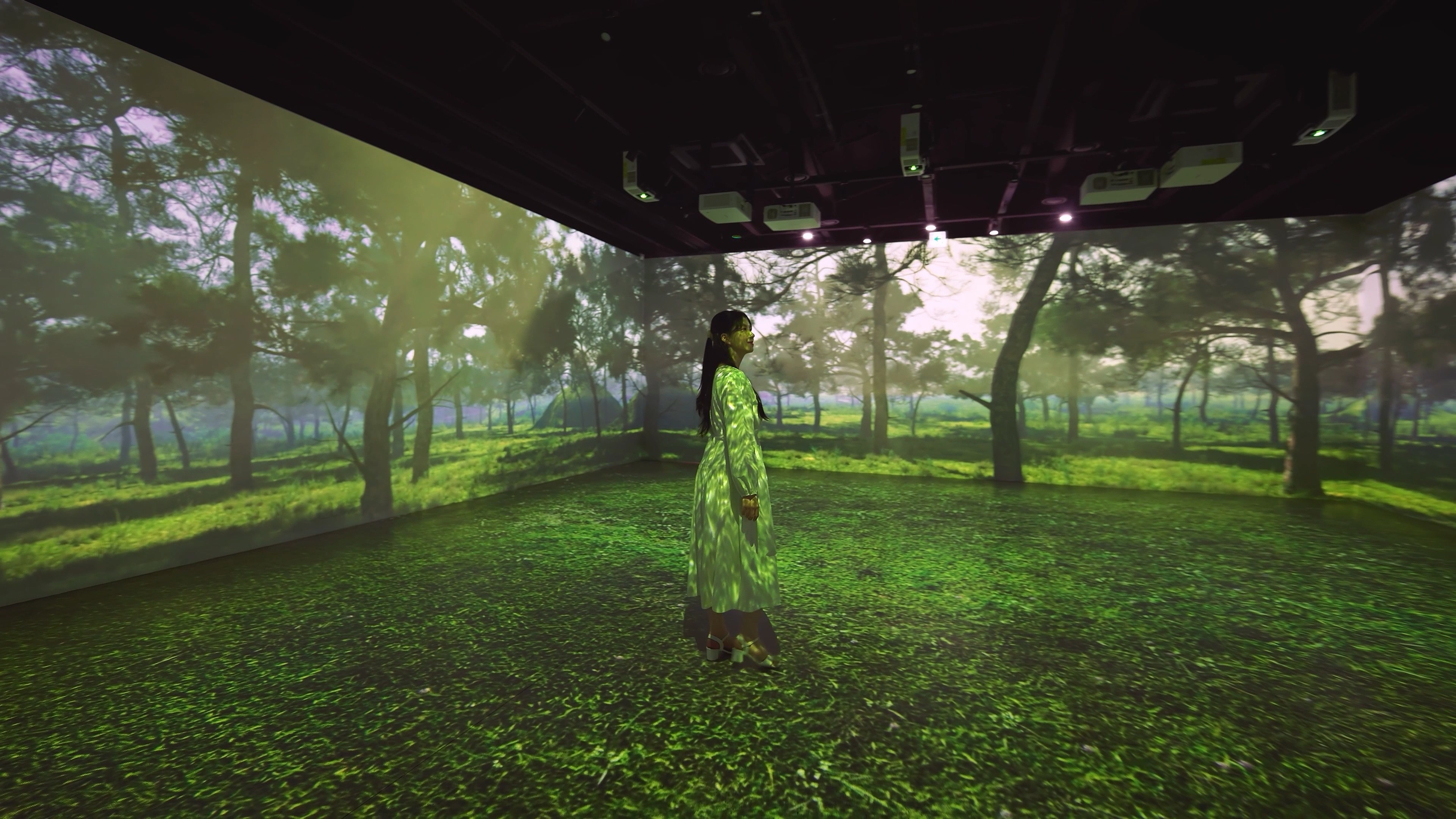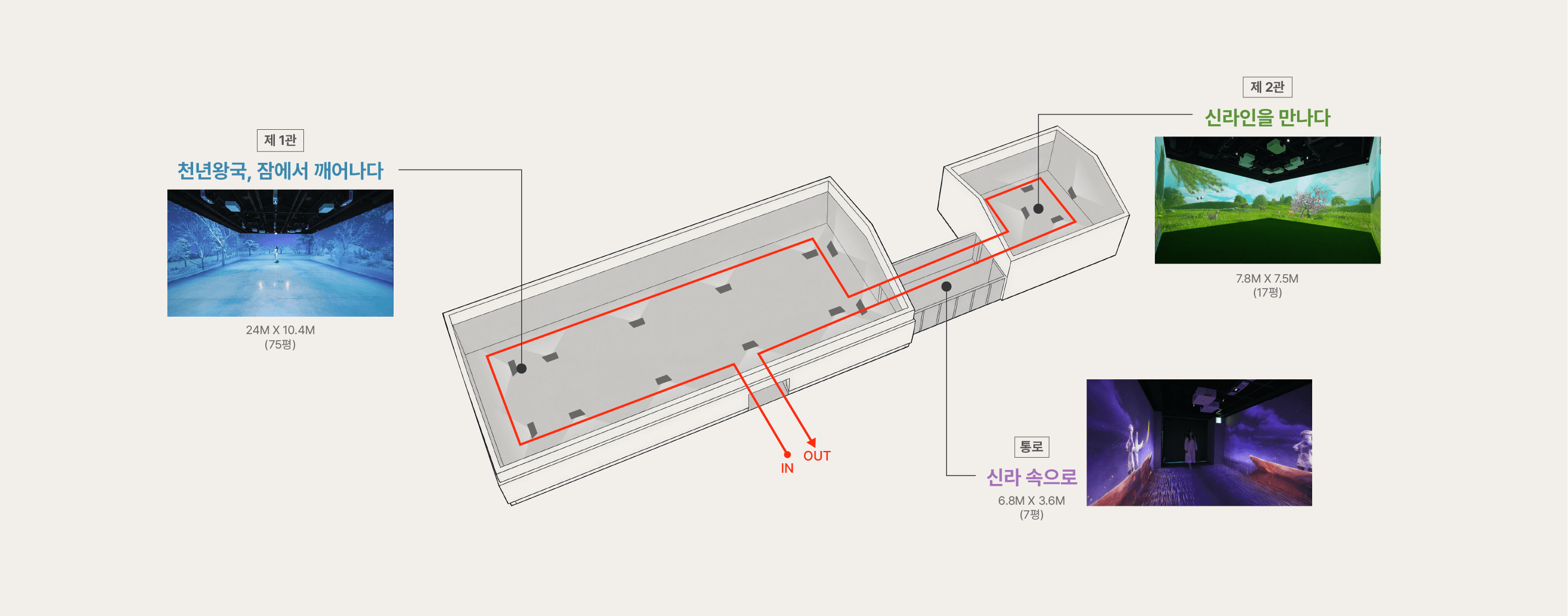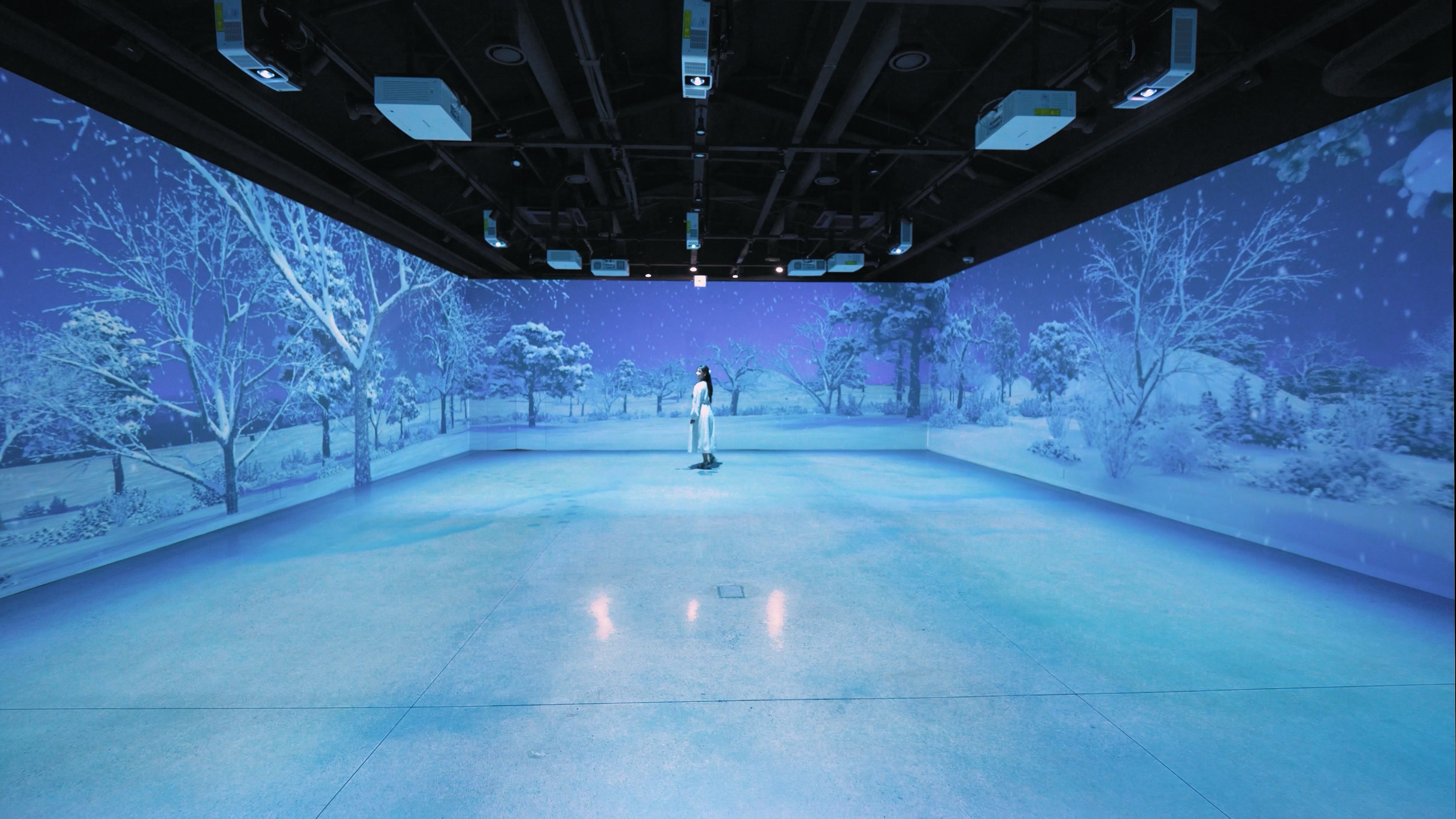 24M*10.4M (75평)의 제 1관 공간 내부 벽면에 몰입형 프로젝션 맵핑 영상과 인터렉션을 통해서